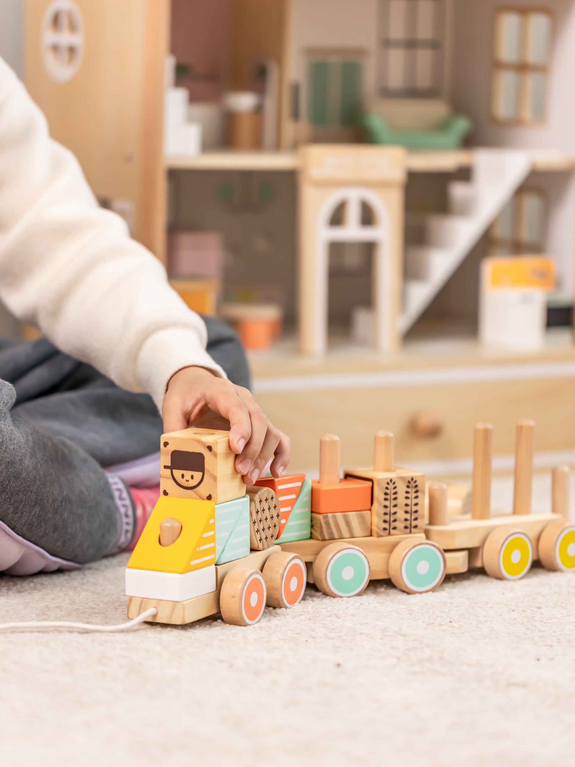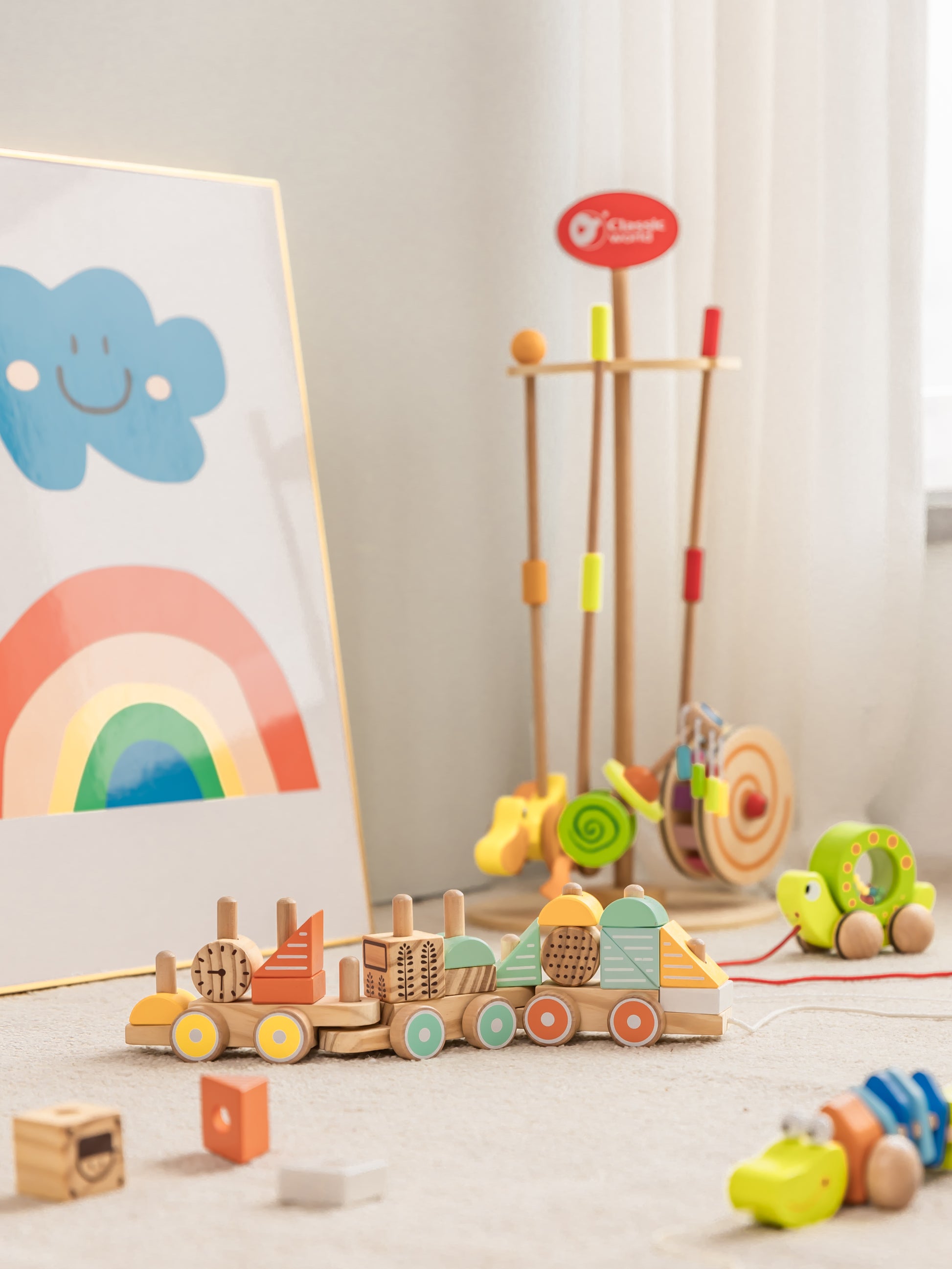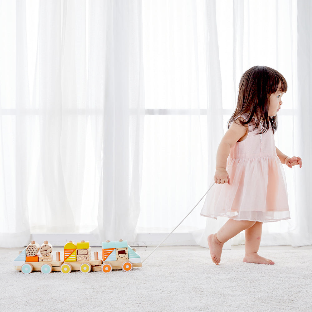 All aboard, the choo choo train is coming! Removeable blocks and shapes stimulate creativity and enhance motor skills. Your toddler can design and re-design over and over again