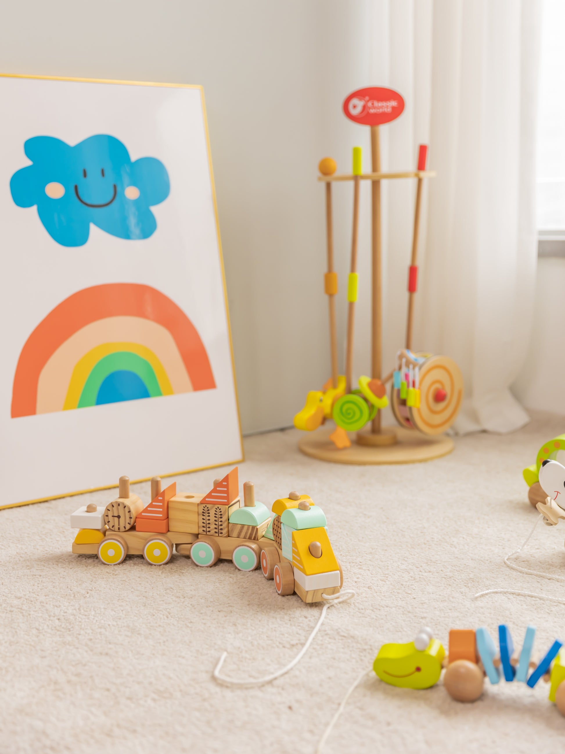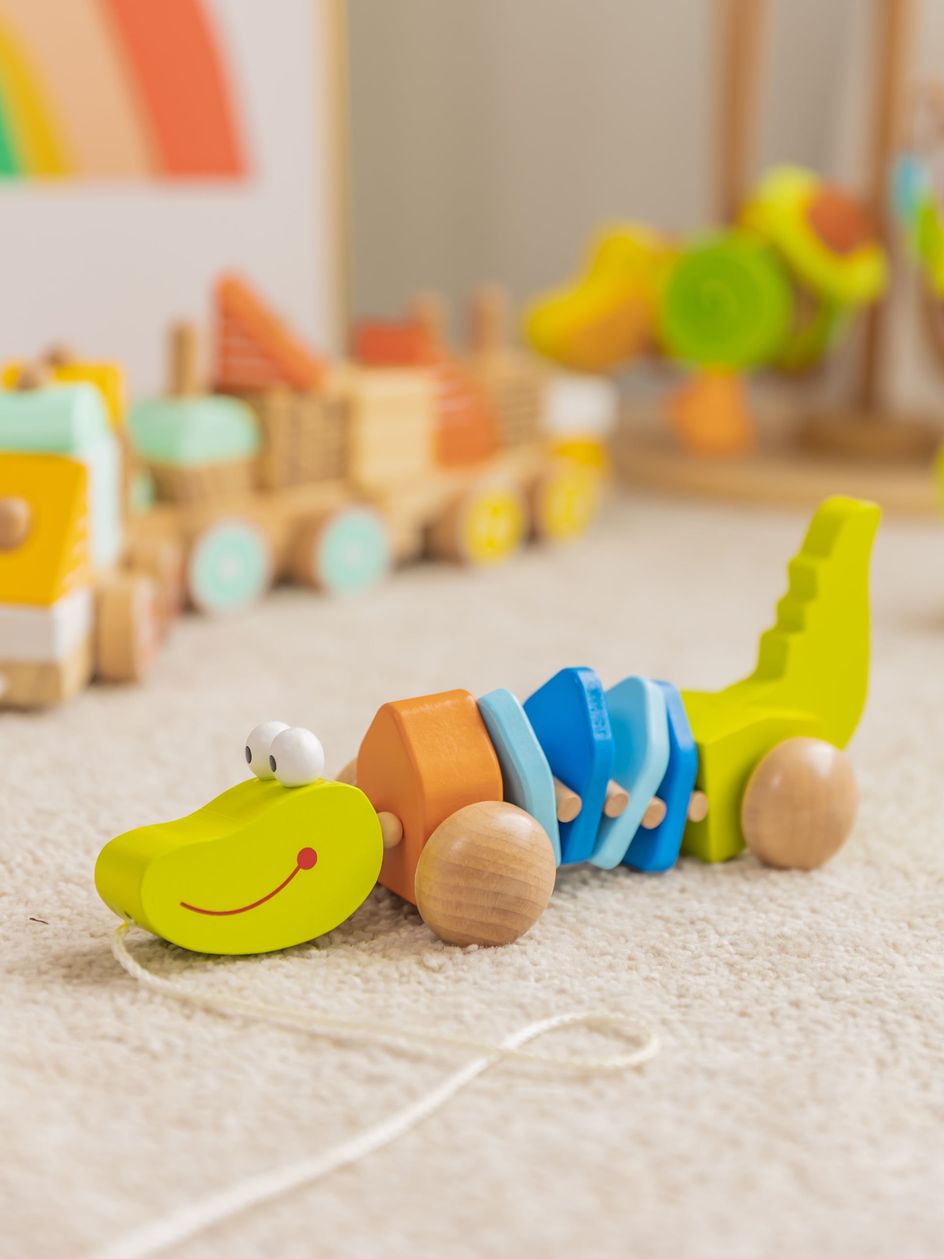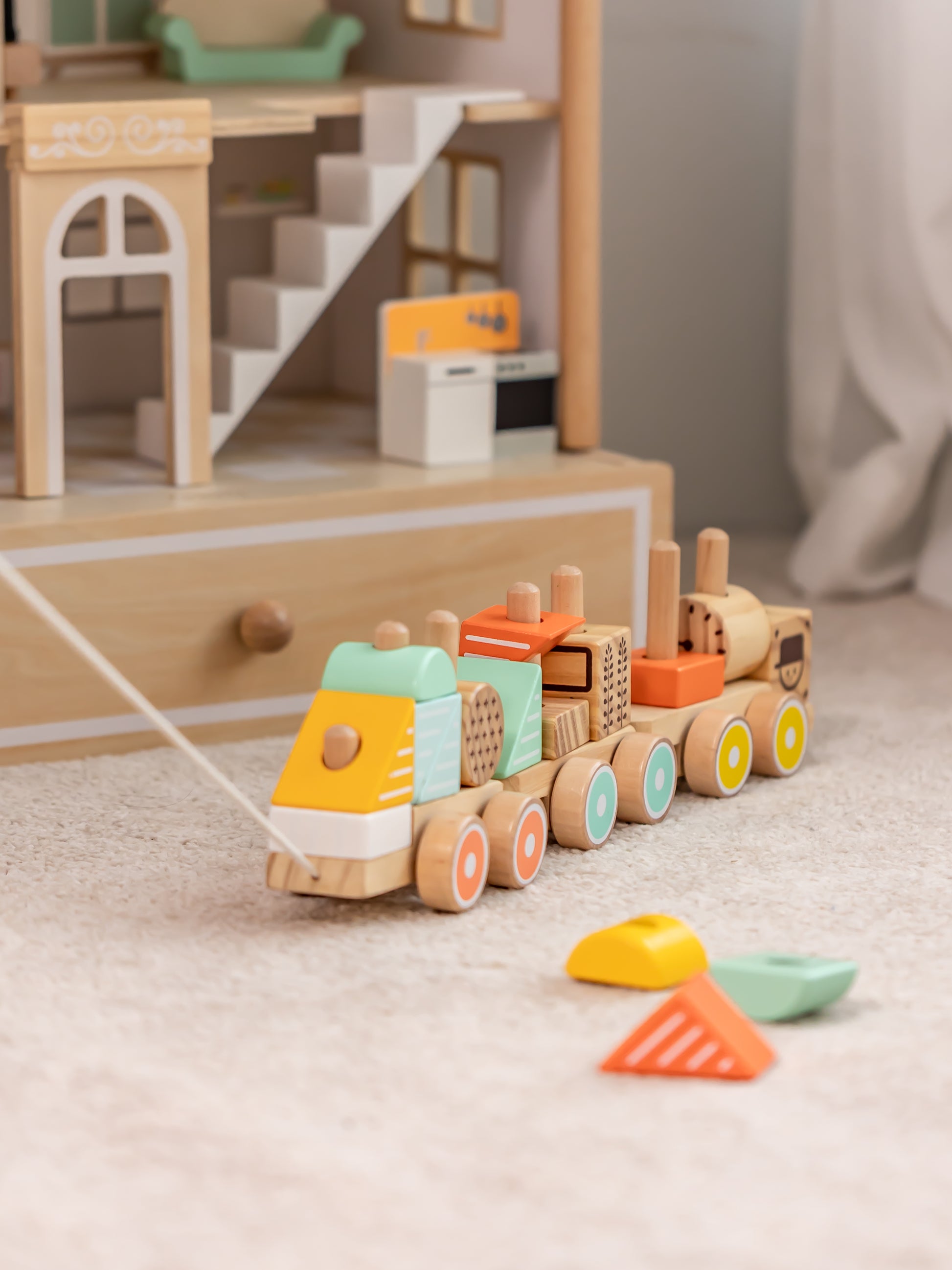 All aboard, the choo choo train is coming! Removeable blocks and shapes stimulate creativity and enhance motor skills. Your toddler can design and re-design over and over again