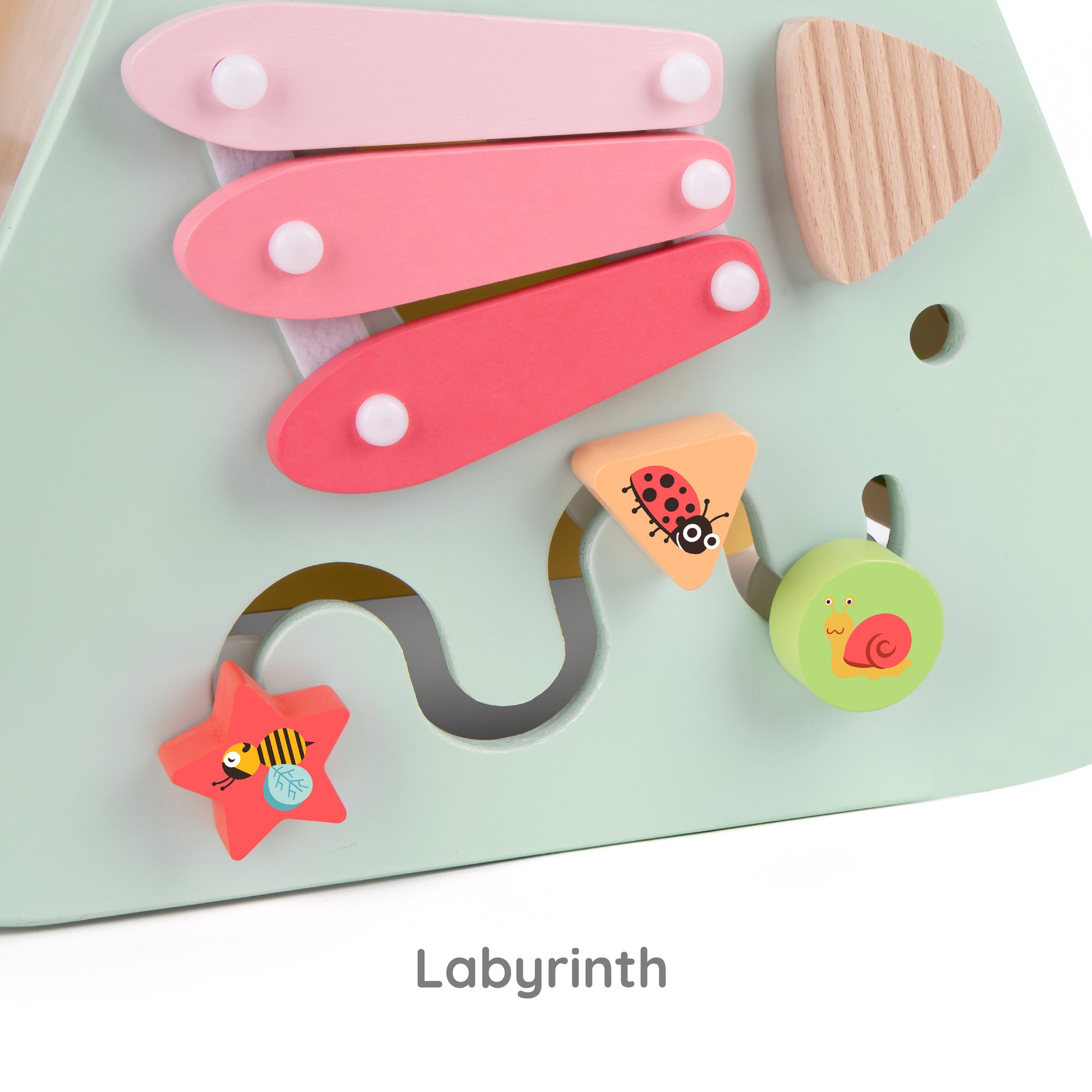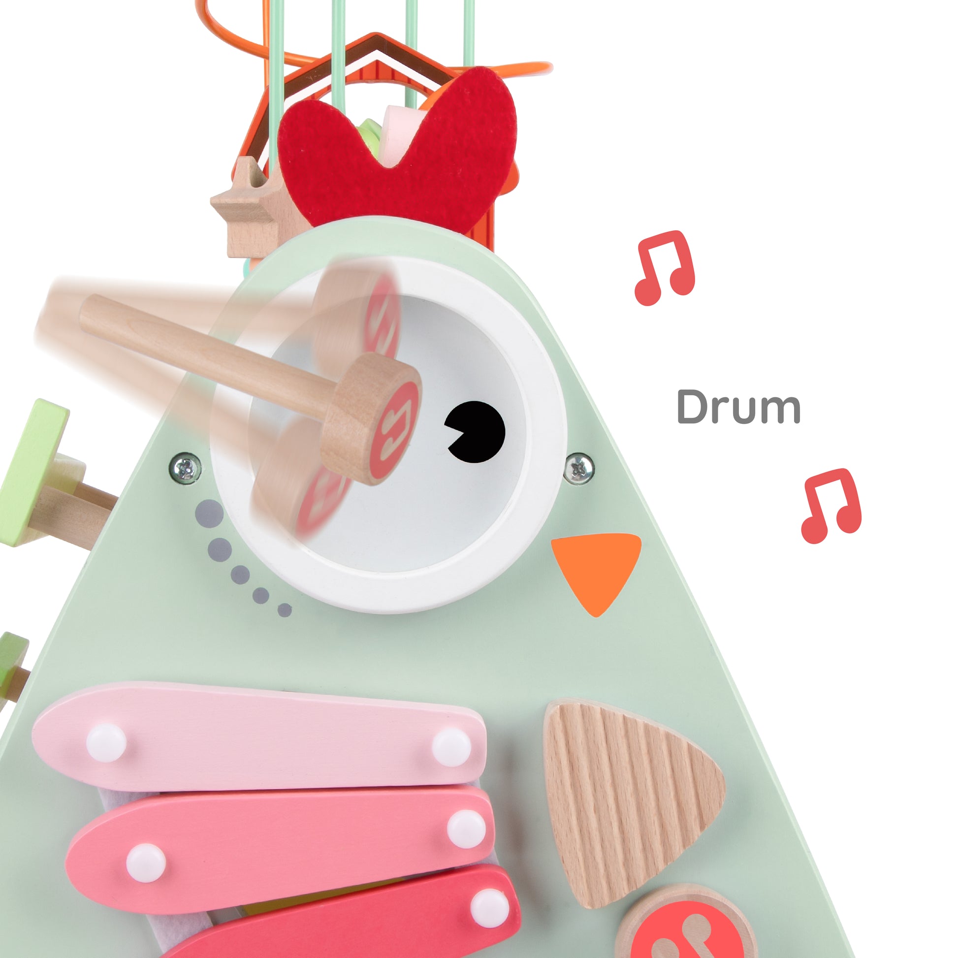 The Happy Hen Activity Box combines many children’s favorite functions: xylophone, maze, bead coasters, gears, shape sorter and etc. Children can have fun with detachable wing rattle and play in an interactive way. It is perfect for practicing hand-eye coordination and fine motor skills.