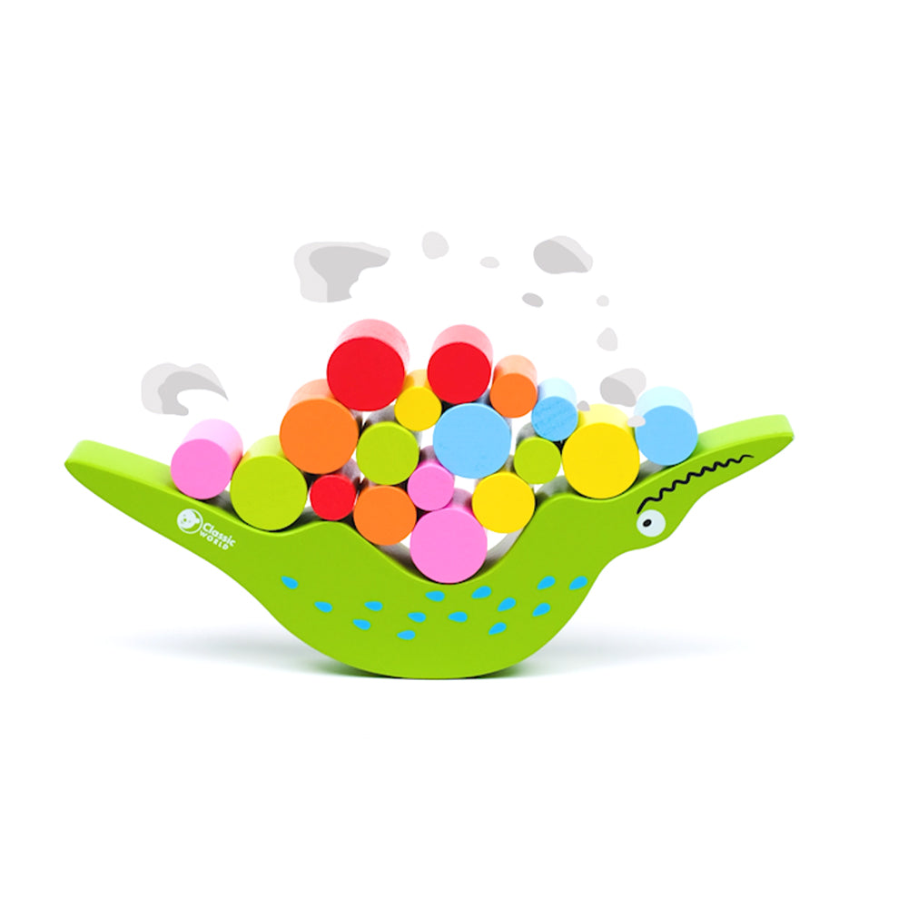 Use the colorful wooden blocks to correctly balance the friendly crocodile. A great teaching tool to enhance hand-eye coordination, fine motor skills and shape recognition.