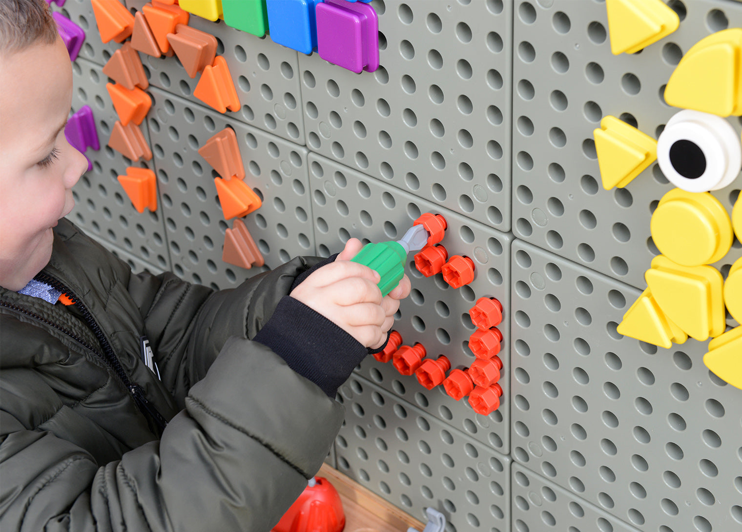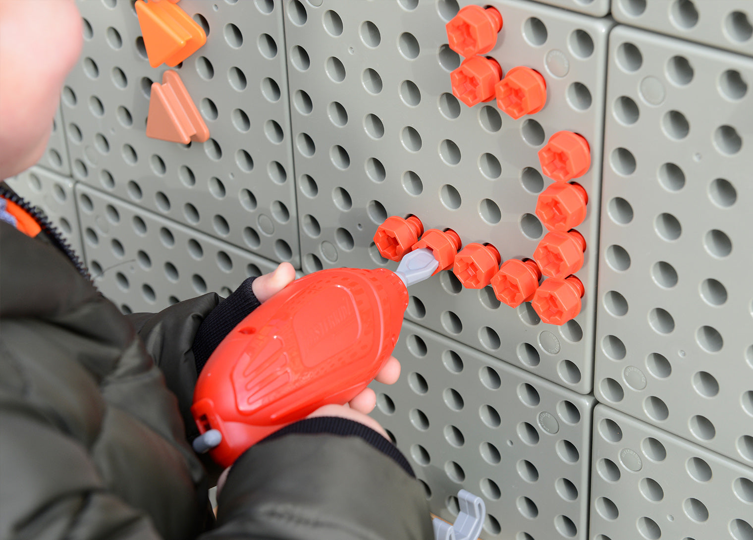 Children love to imitate the behaviour of adults and this pack provides an opportunity for children to use a real battery powered working hand power tool. Ergonomically designed to fit a child?? hand and with a trigger action on/off switch, the hand tool is instantly usable by children from 3 years. Fixing screws to the STEM WALL becomes even easier but with more fun and excitement. ??The pack includes hand tools, a battery powered power handle and a beechwood tool organizer which connects to the STEM WALL.