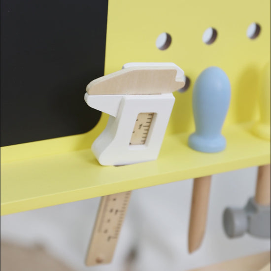 A great addition to any playroom or workshop. This Classic World tool bench will keep your little one busy constructing anything their imagination will allow them to. This is the perfect toy to encourage imaginative play and social interaction. Little builders can enjoy drawing, hammering, and constructing in a safe and child-friendly environment with this wooden tool bench.