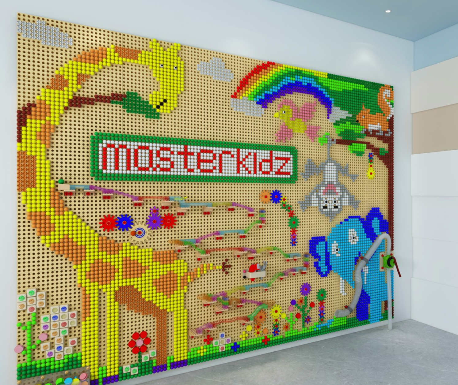 The holes accept push-in pegs, shapes and gemstones and for a more permanent fixing, screws. Once in place, there are literally hundreds of learning opportunities available to children from kindergarten age and up. Chunky colorful pegs can be easily handled by toddlers and soon they will discover patterns, pictures, mosaics and much more besides. As the child develops and progresses so too do the challenges and resources available to the STEM WALL. Children will love the realistic spanner, screwdriver and socket tools as they begin to experience genuine engineering construction for themselves. They can even mechanize the process using a working electric power tool. Gears with a central bearing can be meshed with ease to make long, working gear trains and there is a water chute and marble run system and much more besides. The investment in a STEM WALL will be money well spent presenting an open-ended world of discovery every day!