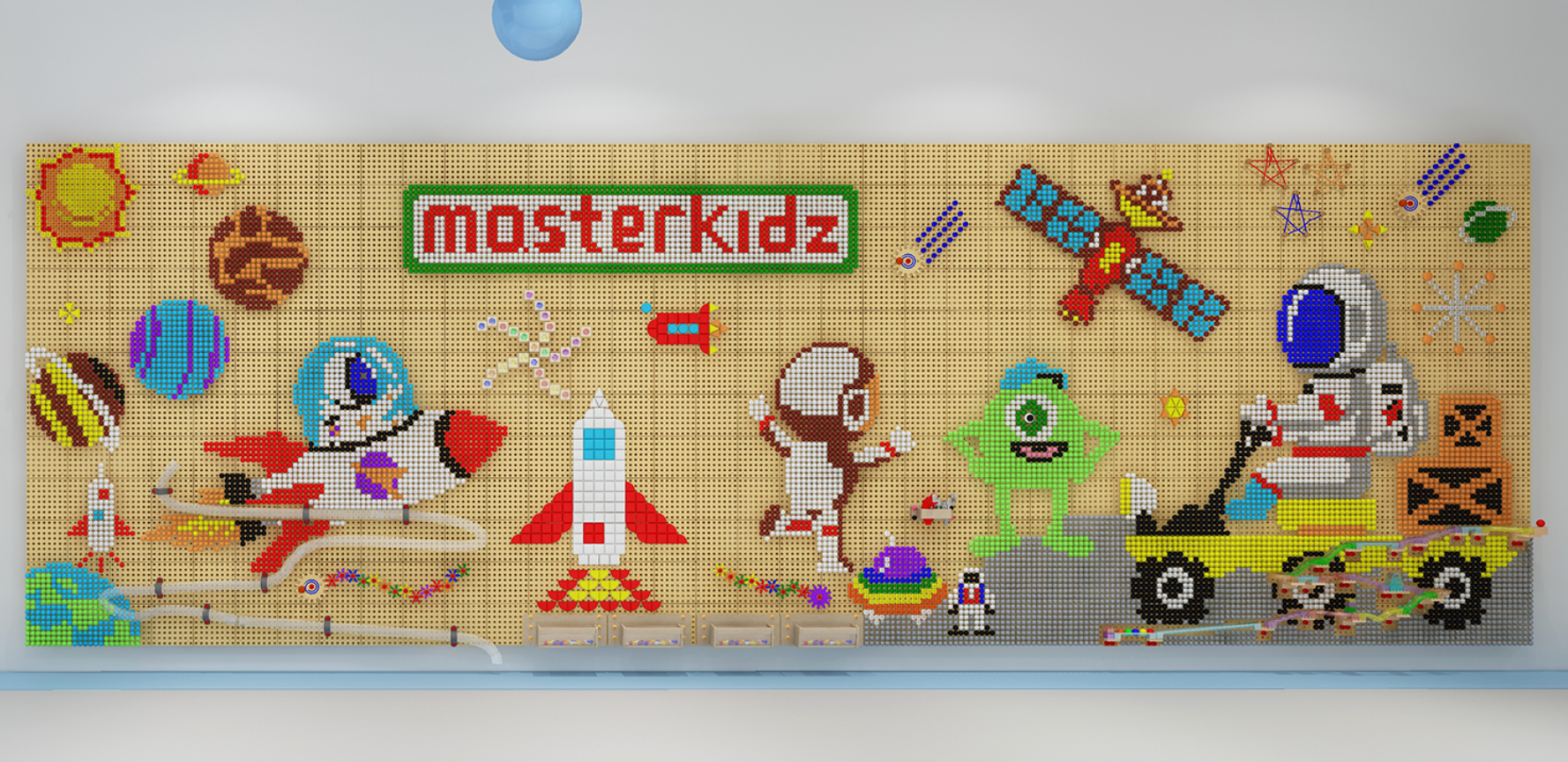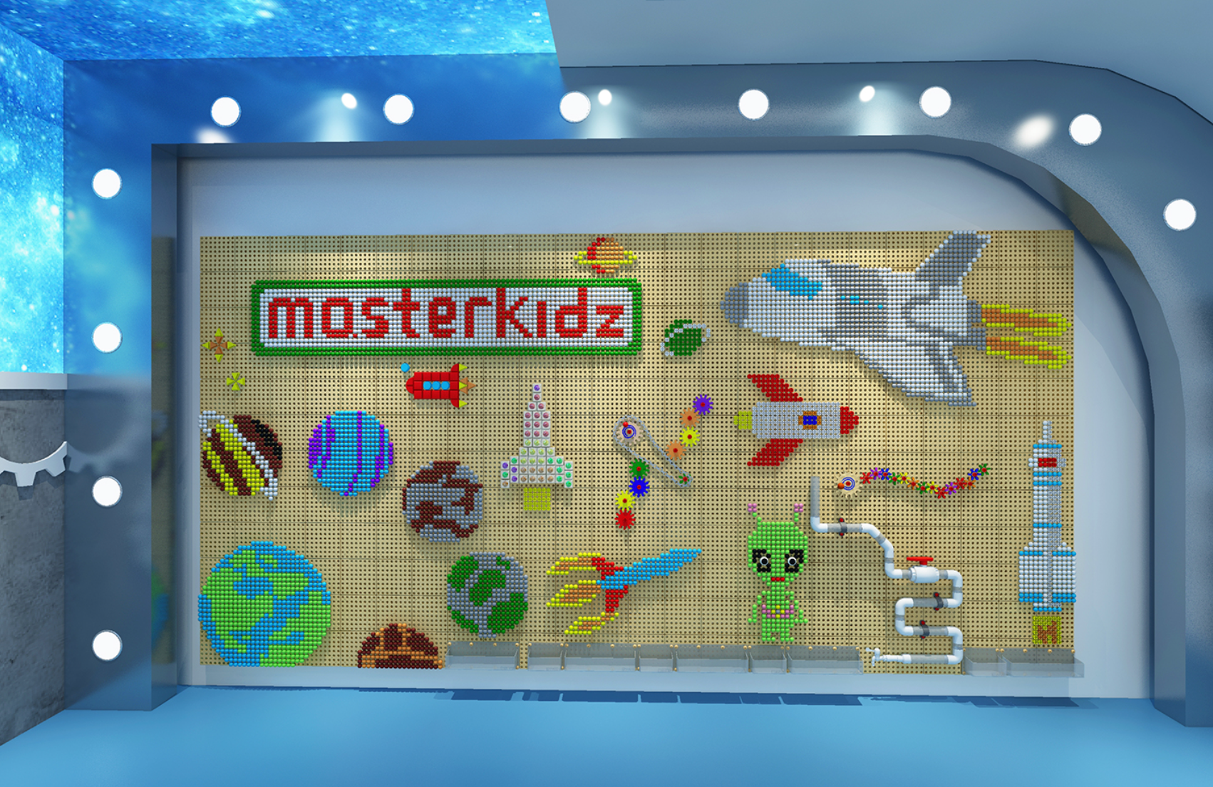 The basic component of a STEM WALL is a plastic tile with precise holes molded into its surface. This is fitted to any classroom wall and surrounded by as many tiles as needed to completely cover the wall space available. The tiles come in various shapes and sizes so they can be fitted from the floor to the ceiling, around windows and doors and all the voids covered neatly.